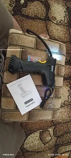 La Pistola Compresor Aire Digital Portátil infla en minutos y la pantalla digital muestra la presión exacta. Muy recomendable para emergencias en carretera.