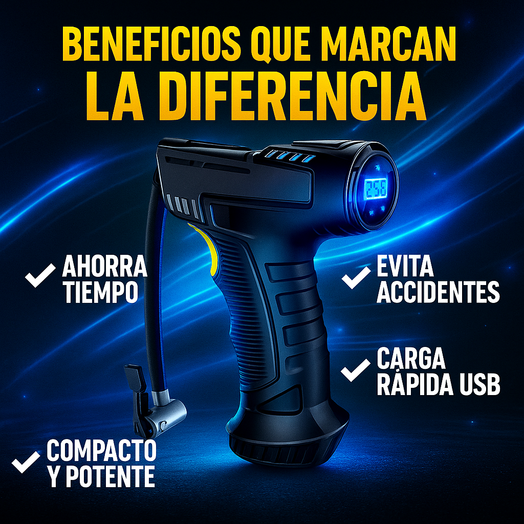 Potente, compacto y listo en minutos. Ideal para coche, moto y bici.